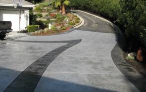 The existing concrete driveway color did not complement the home's true potential. It created a cold atmosphere impeding on the beautiful architecture of the home. Drainage issue were evident possibly contributing to cracks and unsightly stains.
