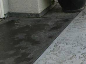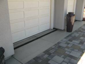 A channel drain was installed in front of all garage doors to prevent blowing rain from entering.
