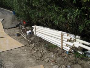 During this stage all drainage and utility (irrigation, wiring, gas, conduit, etc.) installation is completed.