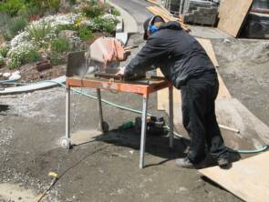 Paver installation requires cutting along borders and drains. This can be a time consuming process to get the cuts just right. Large electric table saws, grinders and manual paver cutters are used to get the paver cuts perfect.