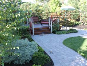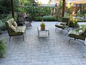 Rear paver patio and walkways meander through this backyard and make a beautiful country setting. The Basalite Paver selection was a perfect match providing a long lasting surface with colors that make a bold statement.