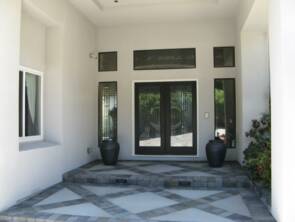 This gorgeous front driveway and entryway have a blend of colors from Calstone that complement this home's formal architecture. The entryway was a design combination of concrete and matching inlayed pavers providing an elegant and stylish impact.