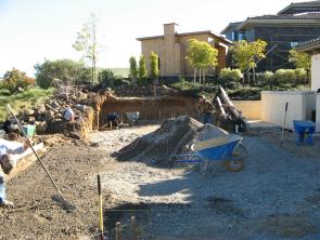 After all utilities are installed (irrigation, drainage, water lines, gas, electrical, sewer, low voltage wire, conduits, sleeves, etc.) we begin the forming, base rock and rebar phase.
