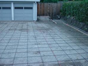 Wood forms held in place with wood stakes illustrate the borders of the patio. It is vital that the forms are placed at the exact locations considering elevations and slope for drainage. Lazar levels and tape measures are a vital part of the accuracy.