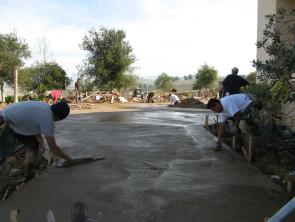 This stage transforms the project from an empty gravel bed, wood frames and maze of steel into a solid hard surface.