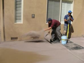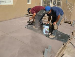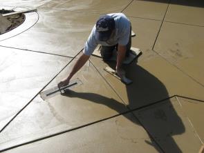 Once the bleed water has disappeared and the concrete can support the weight of a person the troweling, edging and groove cleaning takes place.
