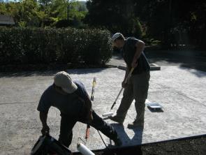 After the concrete is screeded to the level of the forms it is then bullfloated and allowed to dry to the desired consistency. While the concrete is drying the score lines or grooves are marked out and usually installed. Score lines are very important to the structure and appearance of the concrete.