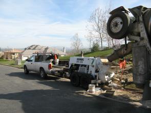 We order our concrete from a reliable concrete company with a mix designed specifically for our project. Concrete is a combination of cement, course and fine aggregates and water. The proper ratio and size of these ingredients various from project to project. Weather, concrete finish and usages will dictate our mixture.